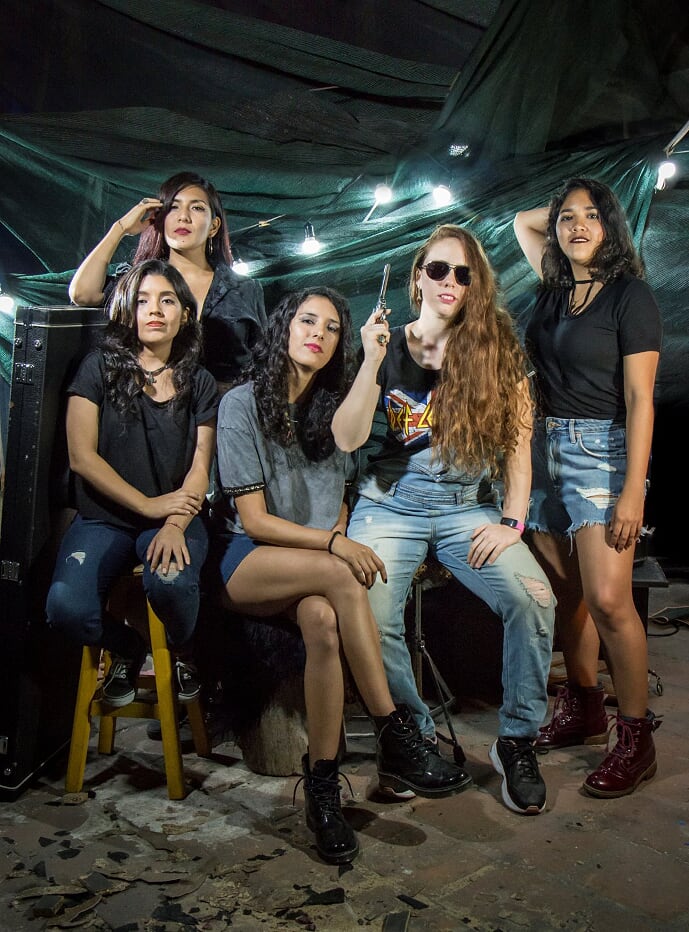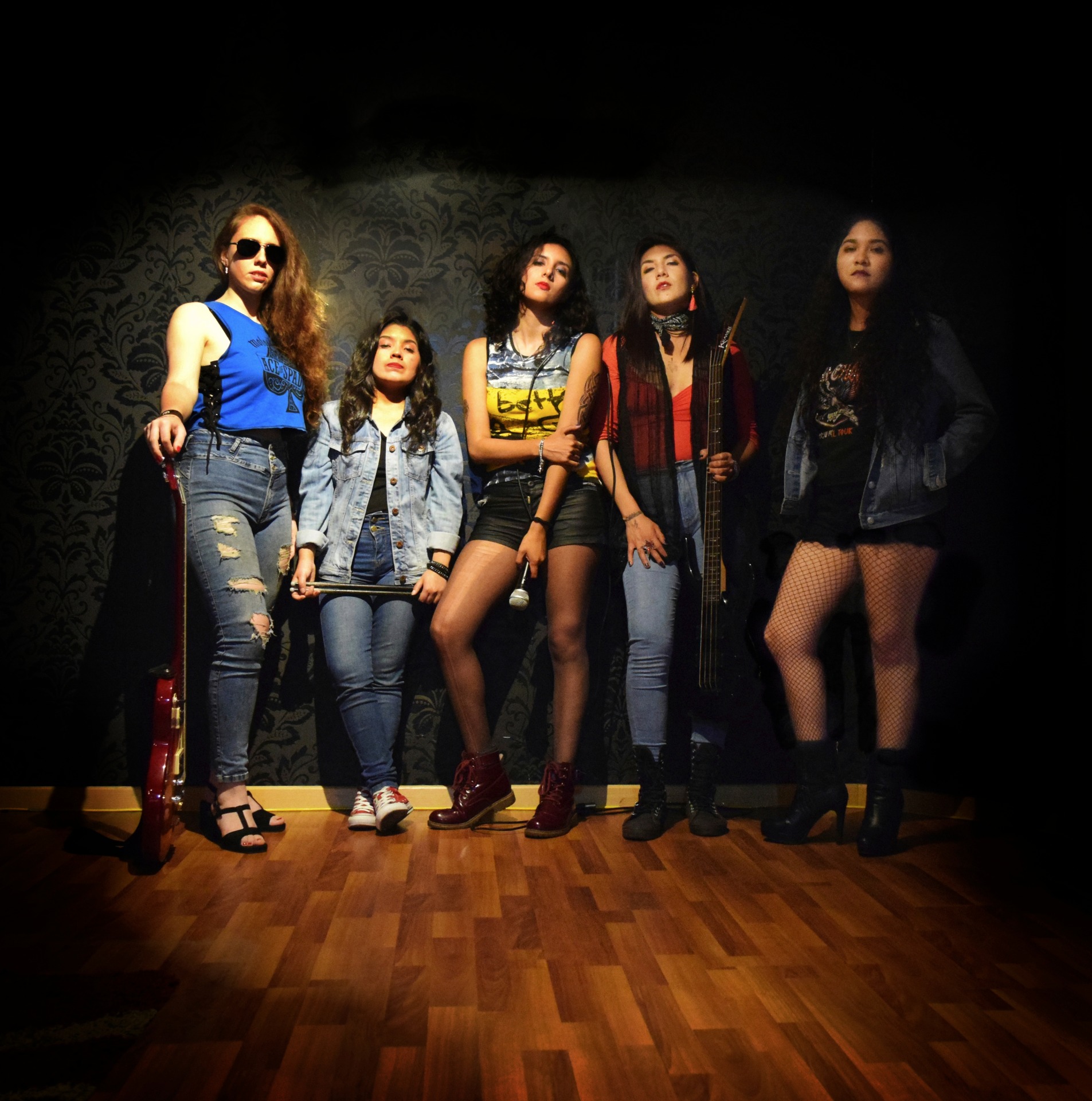 Alana La Madrid (voz); Elimoris Bravo (bajo); Daniella Genit (1era guitarra y corros); Almendra Estrada (2da guitarra); y Paola Leiva (batería).